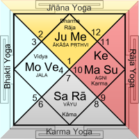 • Dasāṁśa Yoga - The dasamsa should be analyzed in detail independently like the Rasi Chart. The artha (Artha: Finance, money) trikona is composed of the 2nd, 6th & 10th house. Planets in these houses will have a direct bearing on the functioning of the native. Any planet in the tenth house is independently capable of giving good yoga that could mean power, rise and success in ones career. In addition, the seventh house should also be studied, as it is the pada to the tenth. If the Sun dominates in these houses, a political career or simi­lar public service is indicated. Mars gives… Continue Reading